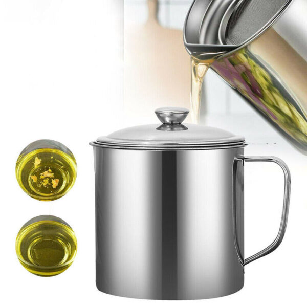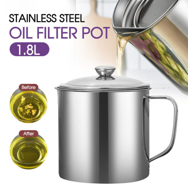 1.8L Stainless Steel Oil Filter Pot Cooking Soup Grease Strainer Separator