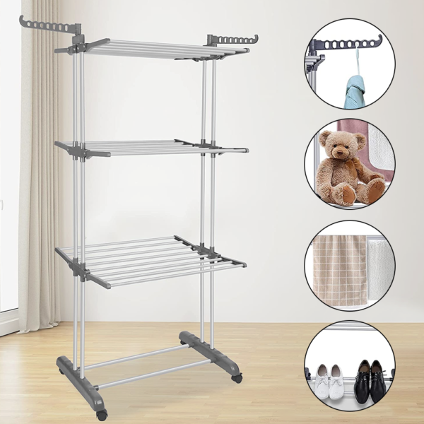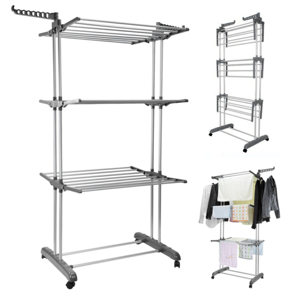 3 Tiers Foldable Garment Hanger Clothes Airer Drying Rack Laundry Support Horse