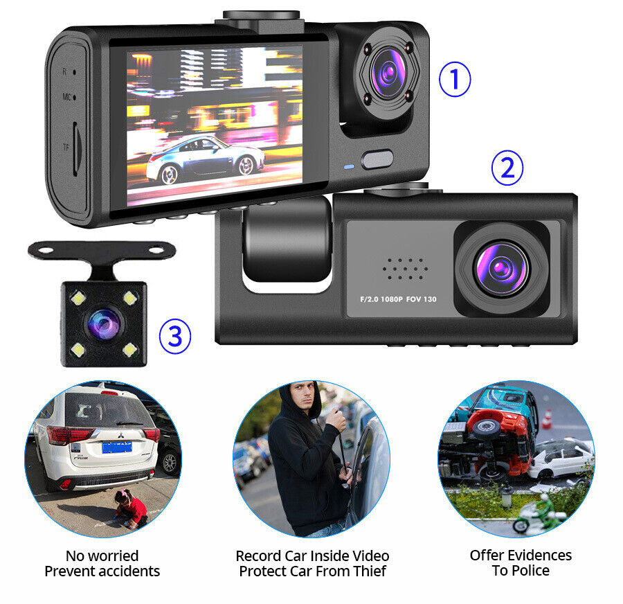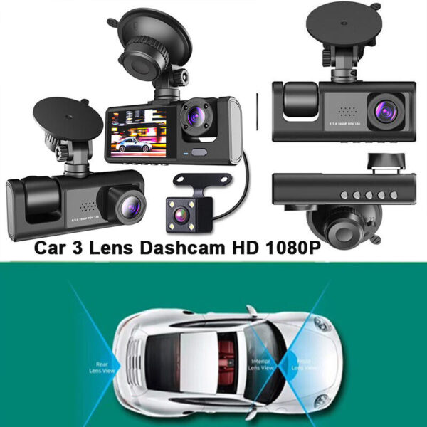 Car Dual Lens Dash Cam HD 1080P Front/Rear/Inside Video Recorder Camera G-sensor