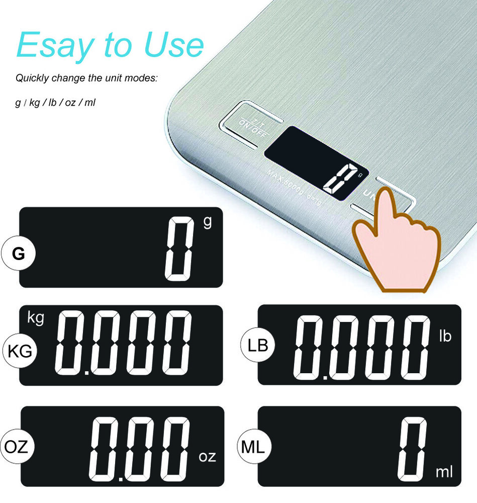 New 5kg 1g Electronic Digital Stainless-steel Kitchen Scale Postal Scales backlit