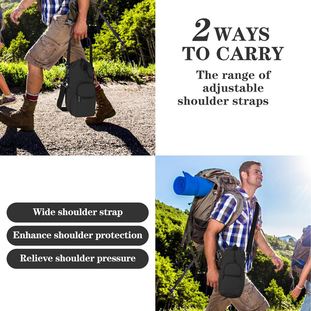 - Portable and Hands-free: You can carry our water bottle holder in two ways with the detachable handles and adjustable shoulder strap. Whether you prefer to hold it in your hand or wear it across your body, our carrier bag is designed to fit all body shapes.