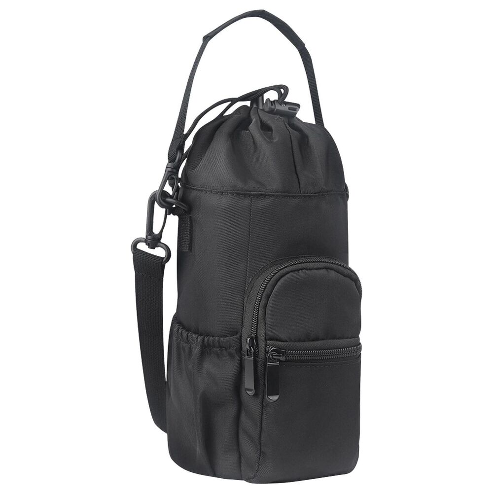 - Multifunctional Design: Our water bottle carrier offers ample space for all your personal items. The main pocket features a convenient drawstring closure, making it easy to insert and remove your bottle. Meanwhile, two front zippered pockets with a key leash can hold your smartphone, keys, and other essentials, while two slip-in side pockets provide a handy spot for snacks.