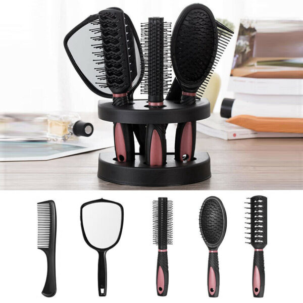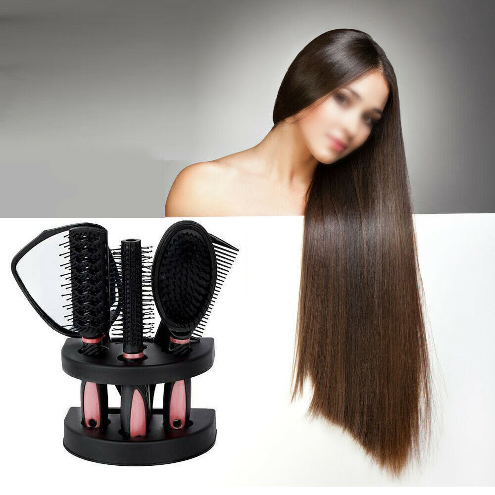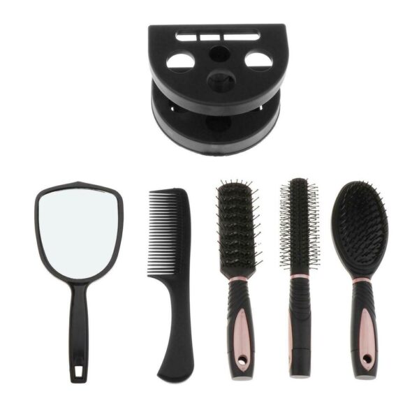 Women Hair Brush Massage Comb Mirror With Hold Stand Makeup Comb Kits 5pcs