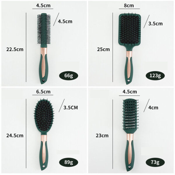 • Size: A (Square comb): 25*8*3.5cm / 9.8*3.1*1.4in ; B (Ellipse comb): 24.5*6.5*3.5cm / 9.6*2.6*1.4in ; C (Tablet comb): 23*4.5*4cm / 9*1.8*1.6in ; D (Curling comb): 22.5*4.5*4.5cm / 8.9*1.8*1.8in